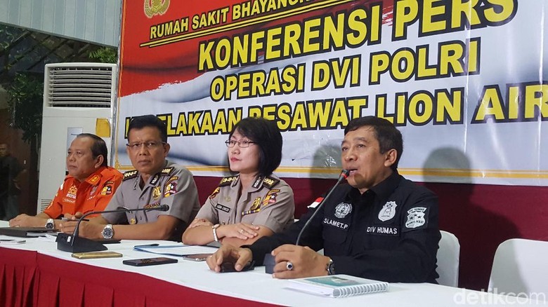 Foto: Kepala Operasi Tim DVI Komisaris Besar Lisda Cancer (dua dari kanan). (Zunita-detikcom)Jakarta -Tim Disaster Victim Investigation (DVI) Polisi Republik Indonesia kembali berhasil mengidentifikasi tiga korban Lion Air PK-LQP yang jatuh di perairan Karawang, Jawa Barat. Jenazah korban akan diserahkan ke keluarga malam ini.